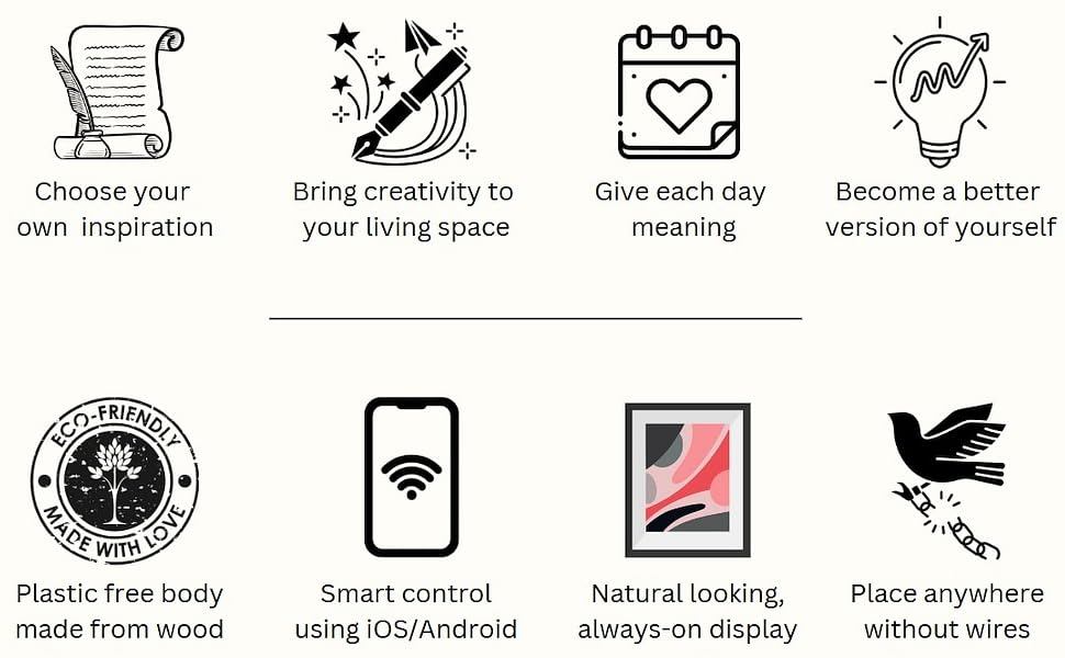 Mana is a first-of-its-kind ereader for quotes and a smart desk calendar that inspires you everyday. You can configure Mana using your smartphone (iOS & Android) and choose topics that inspire you. Choose from quotes, philosophy, inspirational sayings, humor, knowledge, culture and more. Mana will show you new quotes and scenes from your chosen topics automatically every few hours.